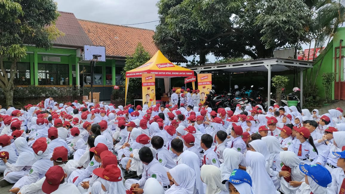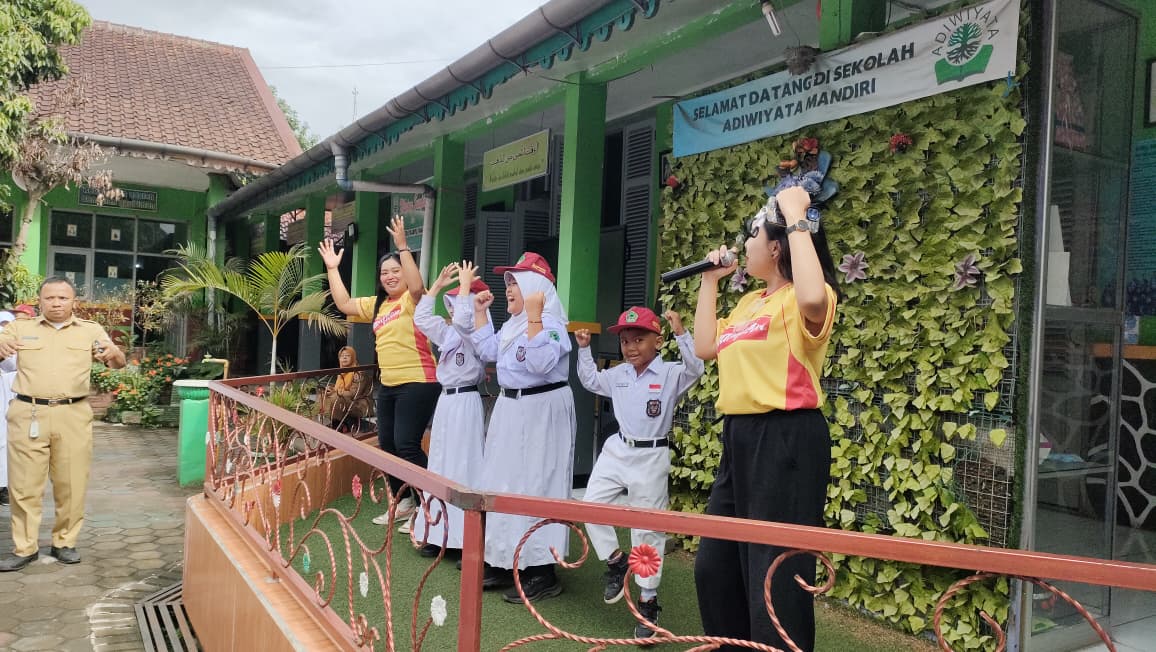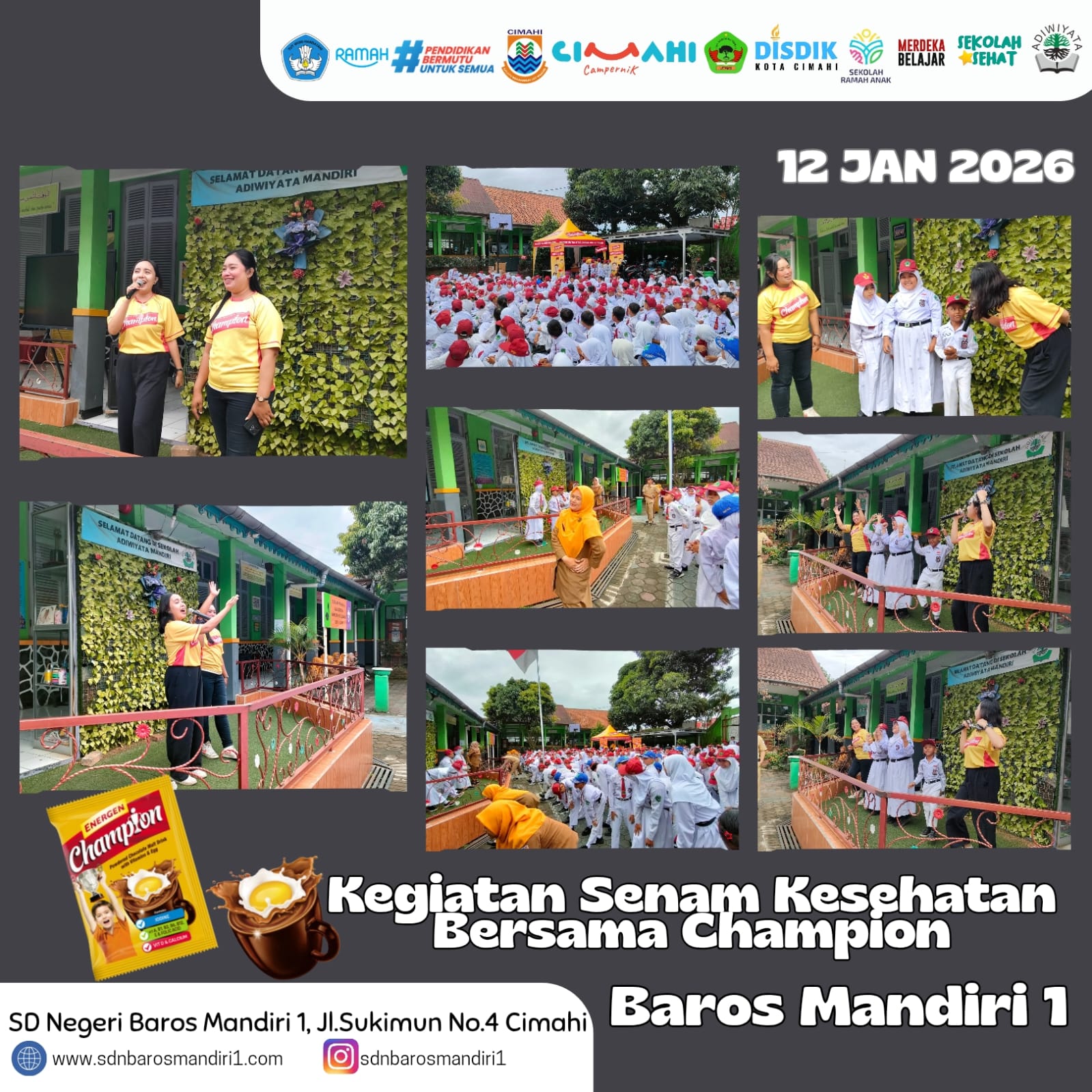Senam ceria penuh semangat diiringi lagu Anak Indonesia Hebat dan Senam bersama Champion.