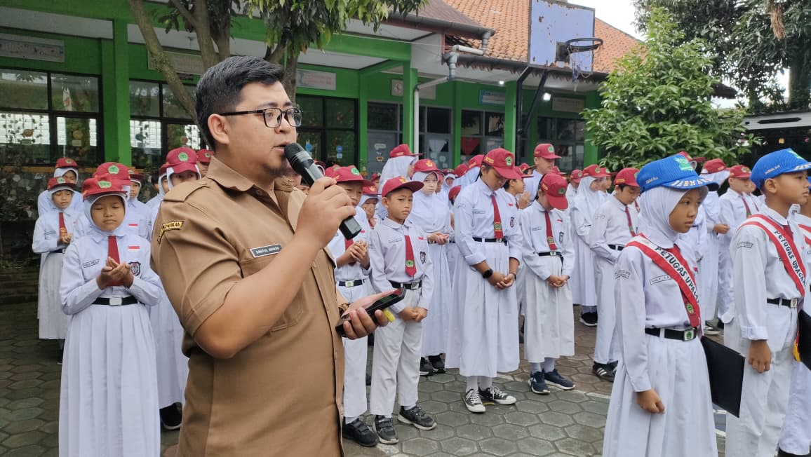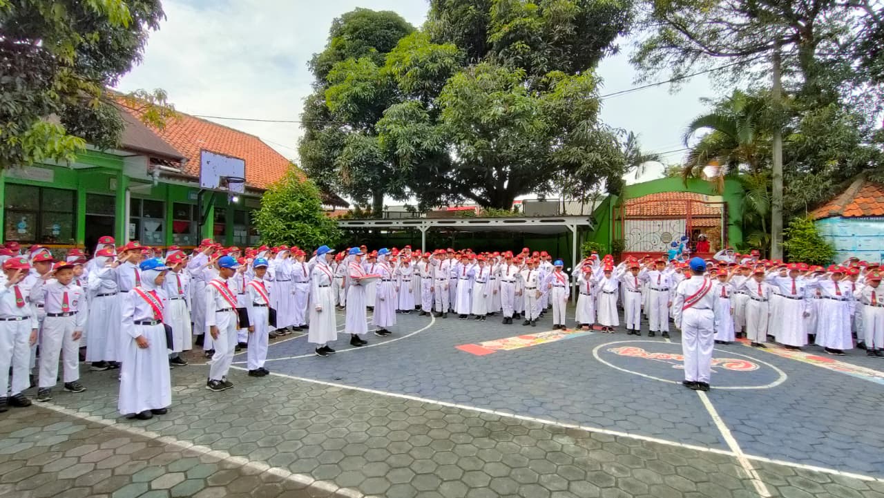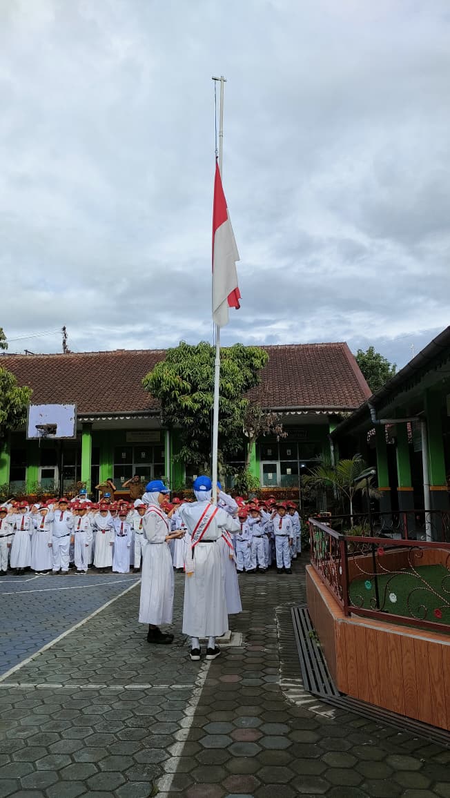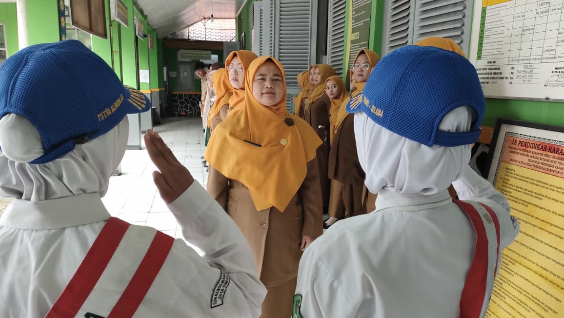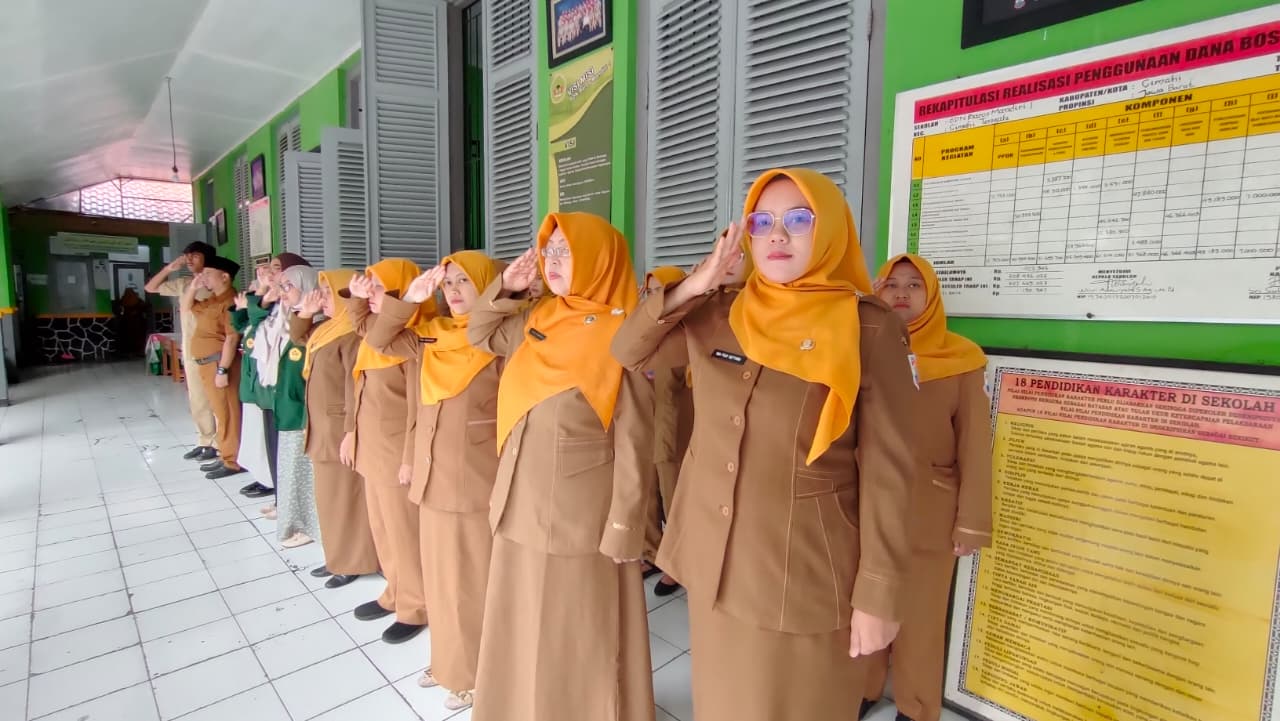 Ibu Kepala Sekolah, Wiwi Adawiyah, S.Ag., M.Pd., siap untuk menjadi pembina upacara di hari baru.
